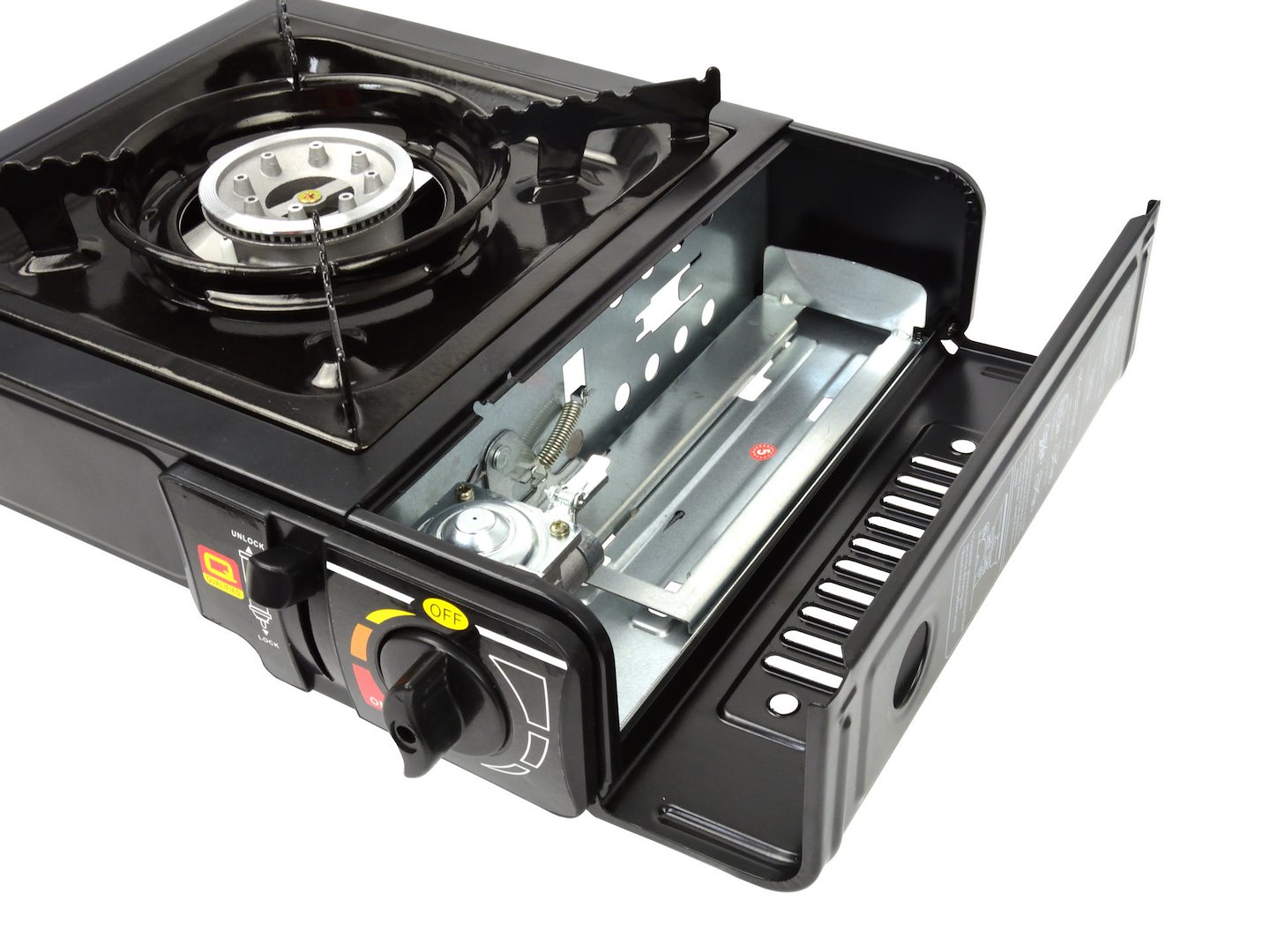 • Bezpieczeństwo i Wygoda: Kuchenka wyposażona w zapalnik piezoelektryczny, który umożliwia łatwe i bezpieczne uruchomienie bez potrzeby użycia zapałek.